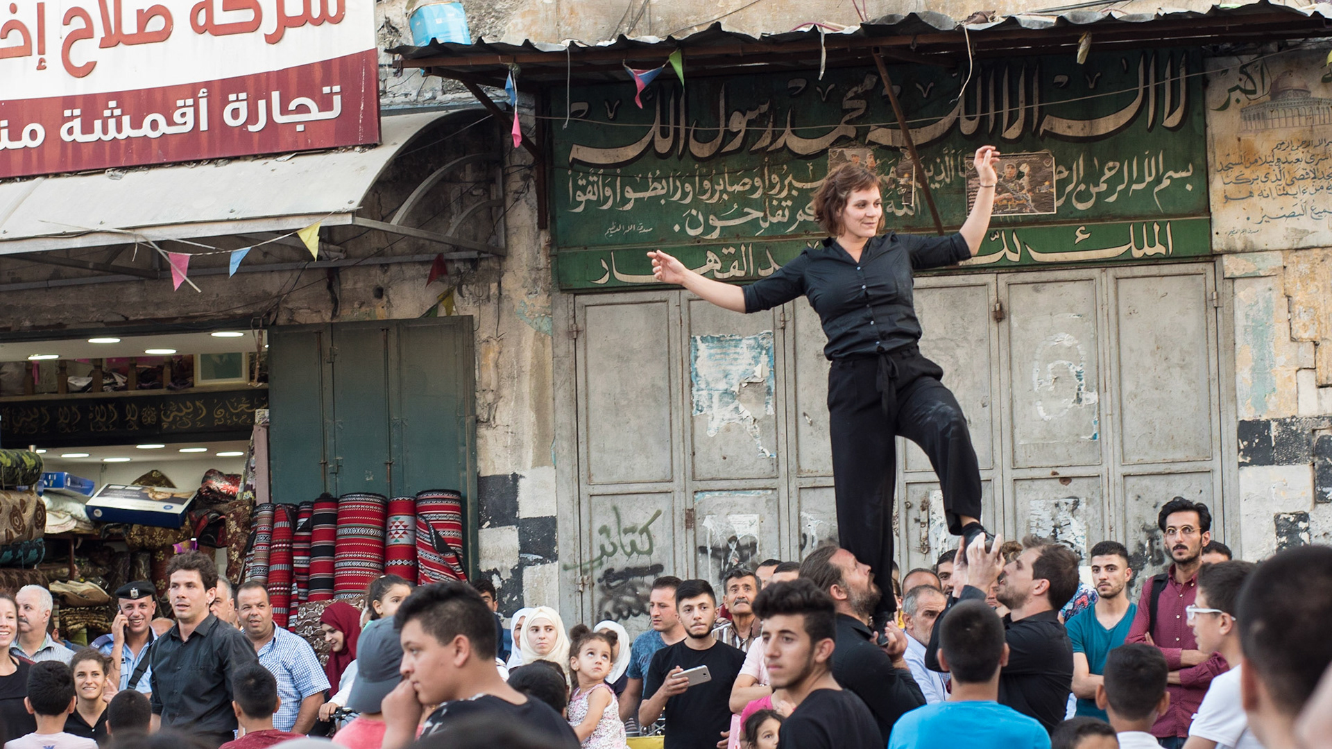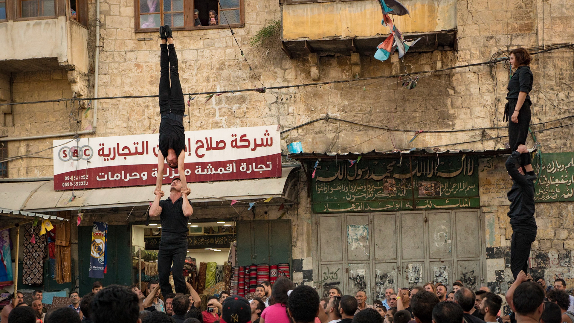 Déambulation de rue de la compagnie XY à Naplouse 2017